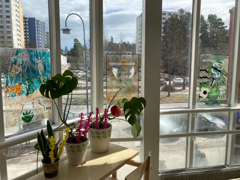 Synnyin Havukoskella 1982 ja asuin siellä ensimmäisen puolikkaan tähänastisesta elämästäni. Kun nyt pohdin lapsuuttani ja nuoruuttani havukoskelaisena, päällimmäisenä tulee mieleen Koivukylän kirjasto ja laululavan kenttä. Niissä kummassakin vietin paljon aikaa. Tuolloin kirjasto sijaitsi vielä ostarilla nykyisen asukastilan paikalla. Kävin siellä koululaisena viikoittain lainaamassa kirjoja ja lukiolaisena tutkimassa netin syövereitä. Muistan myös useamman yhteistyöprojektin koulun ja kirjaston välillä. Eräästä sellaisesta on vielä jäljellä todistusaineistoakin nykyisen asukastilan ikkunoissa. Nähdessäni keväällä lähes 30 vuotta sitten maalatut lasitaideteokset edelleen roikkumassa ikkunoissa iski todellinen nostalgiapuuska. Toivottavasti ne säilyvät paikoillaan yhtä kauan kuin rakennuskin.